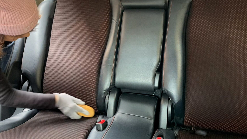 ここに座っていたのですね〜。汗や、手垢、食べこぼし、経年の埃などなど、座席にはいろいろな見えない汚れが染み込んでいます。これでスッキリ乗れますね。